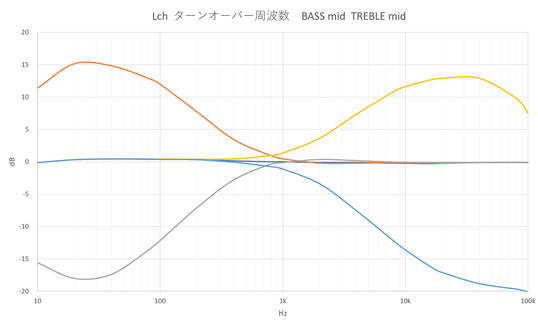 オーバー周波数を3段階に切り替えることができるようにしてあります。バランスコントロール用にMN型ボリウムを使用しています。センタークリックのある