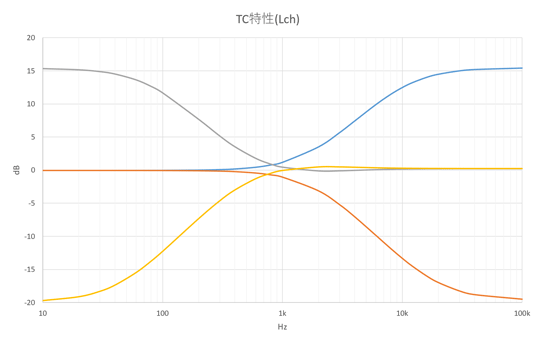 オーディオ用のプリアンプの回路と類似しています。ただ、Baxandall型トーンコントロール回路の部分は異なっています。前回同様に、